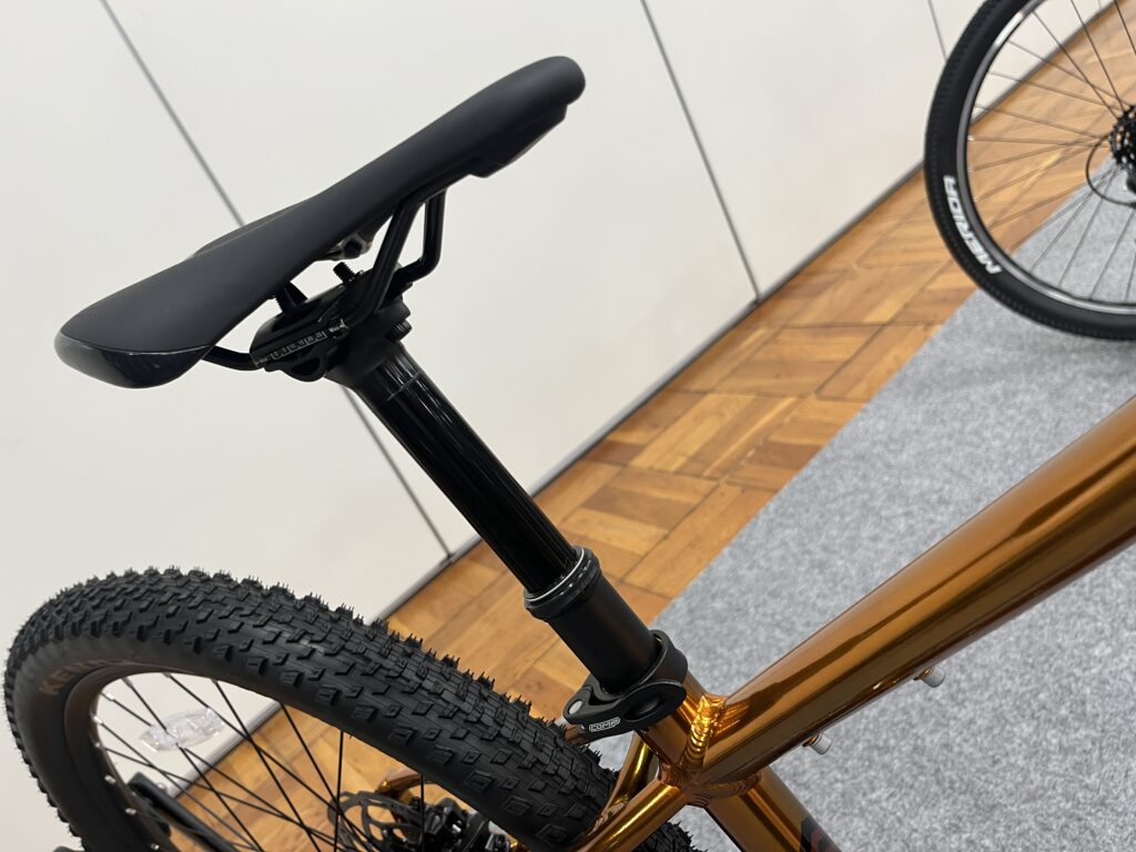 26インチホイール&120mmトラベルフォーク、油圧DISCブレーキに今年からドロッパーポストまでついた妥協なきフル装備が施された1台です。贅沢~!