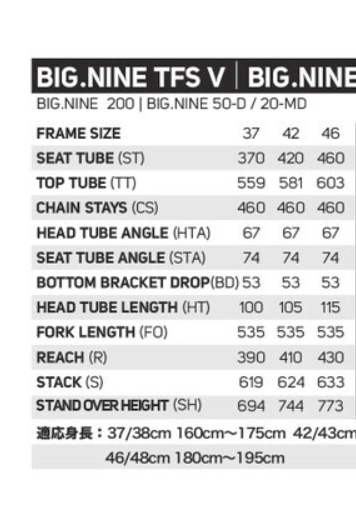 このモデルの登場によって昨年までの第4世代TFSフレームのBIG-NINE400と BIG-NINE80がアウトレット価格になっていますし継続となるBIG-NINE 20MD、50D、27.5インチ仕様のBIG-SEVENと合わせると9万円〜17万円の幅に7モデルが犇めく渋滞ゾーンに。