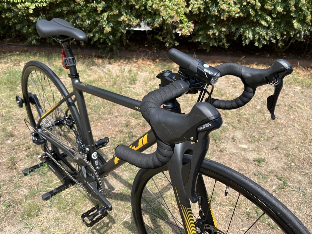 安直にCUESを使わずピュアロードコンポのSORAを採用するあたりも硬派。11-28tですしね。