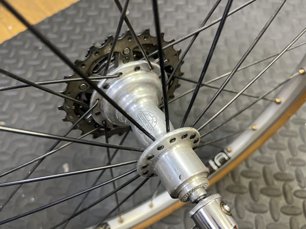 走行中にホイールからパキパキ音が鳴る、という事で確認をしてみるとこのホイールが組まれた時代(2010年ごろ~)に多い反フリー側ラジアル組。