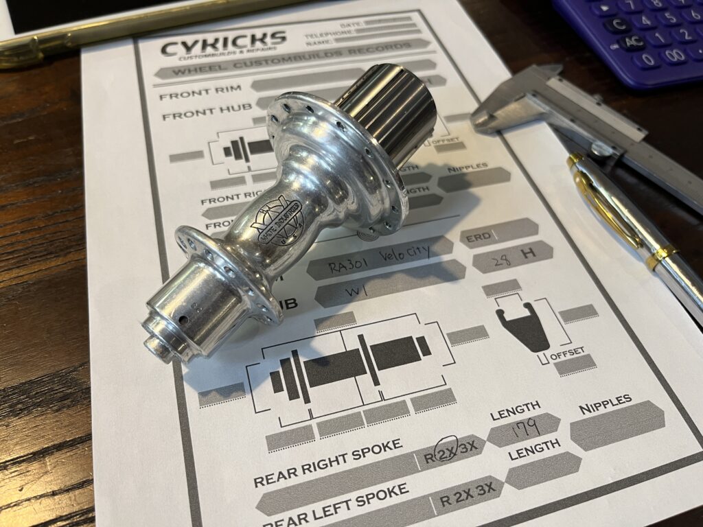 同時にハブの清掃とガタが出ていたベアリングも打ち換えてリフレッシュ!無事に音鳴りが解消できました。細かい調整や仕様変更が可能なのは手組ホイール1番のメリットです。